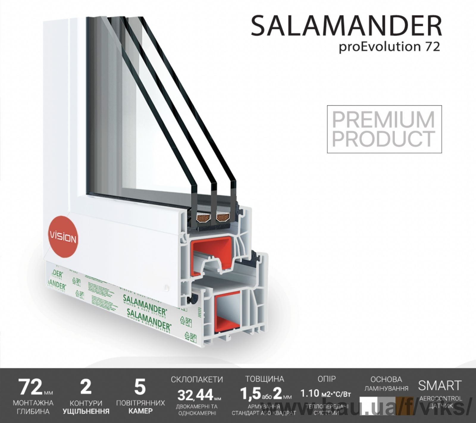 Сучасні вікна Salamander 72mm